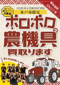 4月は水戸市で農機具買取10%UPキャンペーンです