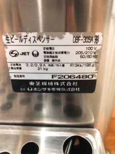 こちらでしたらホシザキのDBF-30SAというビールサーバーです