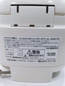 水戸にて象印のマイコン炊飯ジャーJAG-H100を出張買取いたしました