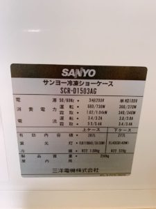 先日、いわきにてSANYO 冷凍ショーケース SCR-D1503AGを買取いたしました。